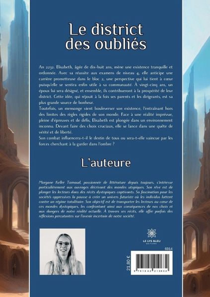 An 2232. Elisabeth, âgée de dix-huit ans, mène une existence tranquille et ordonnée. Avec sa réussite aux examens de niveau 4, elle anticipe une carrière prometteuse dans le bloc 2, une perspective qui lui tient à c¿ur puisqüelle se sentira enfin utile à sa communauté. À vingt-cinq ans, un époux lui sera désigné, et ensemble, ils contribueront à la prospérité de leur district. Cette idée, qui réjouit à la fois ses parents et les dirigeants, est sa plus grande source de bonheur. Toutefois, un mensonge vient bouleverser son existence, l¿entraînant hors des limites des règles rigides de son monde. Face à une réalité imprévue, pleine d¿épreuves et de défis, Elisabeth est plongée dans un environnement inconnu. Devant faire des choix cruciaux, elle se lance dans une quête de vérité et de liberté. Son combat influencera-t-il le destin de tous ou sera-t-elle vaincue par les forces cherchant à la garder dans l¿ombre ?