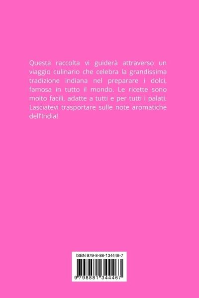 Questa raccolta vi guiderà attraverso un viaggio culinario che celebra la grandissima tradizione indiana nel preparare i dolci, famosa in tutto il mondo. Le ricette sono molto facili, adatte a tutti e per tutti i palati. Lasciatevi trasportare sulle note aromatiche dell'India!