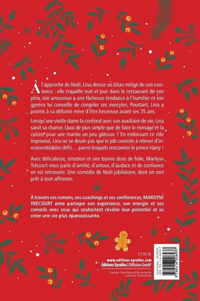 A l'approche de Noël, Lina dresse un bilan mitigée de son existence: elle travaille nuit et jour dans le restaurant de son père, son amoureux a une fâcheuse tendance à l'humilier et son gynéco lui conseille de congeler ses ovocytes. Pourtant, Lina a promis à sa défunte mère d'être heureuse avant ses 35 ans. Lorsqu'une vieille dame la confond avec son auxiliaire de vie, Lina saisit sa chance. Quoi de plus simple que de faire le ménage et la cuisine pour une mamie un peu gâteuse ? En endossant ce rôle improvisé, Lina ne se doute pas que le job consiste à relever d'invraisemblables défis... parmi lesquels rencontrer le prince Harry ! Avec délicatesse, émotion et une bonne dose de folie, Marilyse Trécourt nous parle d'amitié, d'amour, d'audace et de confiance en soi retrouvée. Une comédie de Noël jubilatoire, dont on sort prêt à tout affronter.