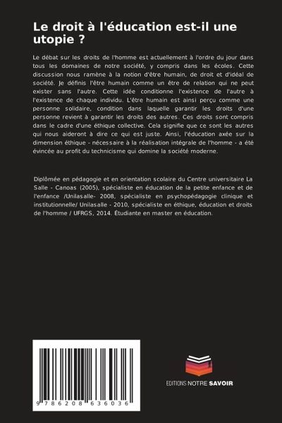 Le débat sur les droits de l'homme est actuellement à l'ordre du jour dans tous les domaines de notre société, y compris dans les écoles. Cette discussion nous ramène à la notion d'être humain, de droit et d'idéal de société. Je définis l'être humain comme un être de relation qui ne peut exister sans l'autre. Cette idée conditionne l'existence de l'autre à l'existence de chaque individu. L'être humain est ainsi perçu comme une personne solidaire, condition dans laquelle garantir les droits d'une personne revient à garantir les droits des autres. Ces droits sont compris dans le cadre d'une éthique collective. Cela signifie que ce sont les autres qui nous aideront à dire ce qui est juste. Ainsi, l'éducation axée sur la dimension éthique - nécessaire à la réalisation intégrale de l'homme - a été évincée au profit du technicisme qui domine la société moderne.
