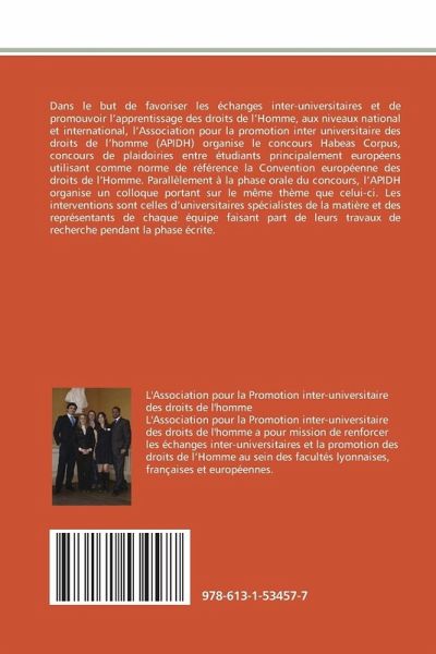 Dans le but de favoriser les échanges inter-universitaires et de promouvoir l'apprentissage des droits de l'Homme, aux niveaux national et international, l'Association pour la promotion inter universitaire des droits de l'homme (APIDH) organise le concours Habeas Corpus, concours de plaidoiries entre étudiants principalement européens utilisant comme norme de référence la Convention européenne des droits de l'Homme. Parallèlement à la phase orale du concours, l'APIDH organise un colloque portant sur le même thème que celui-ci. Les interventions sont celles d'universitaires spécialistes de la matière et des représentants de chaque équipe faisant part de leurs travaux de recherche pendant la phase écrite.