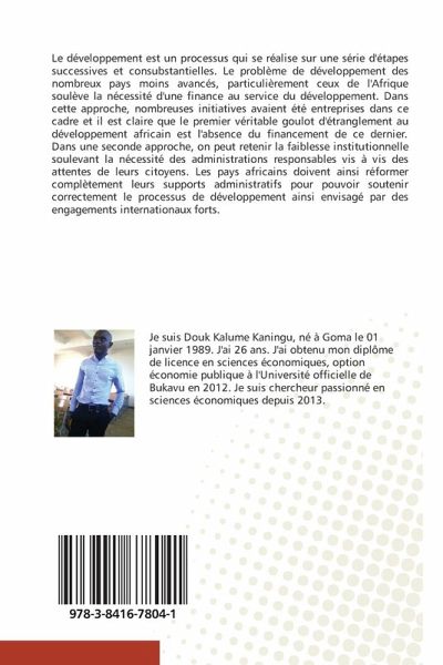 Le développement est un processus qui se réalise sur une série d'étapes successives et consubstantielles. Le problème de développement des nombreux pays moins avancés, particulièrement ceux de l'Afrique soulève la nécessité d'une finance au service du développement. Dans cette approche, nombreuses initiatives avaient été entreprises dans ce cadre et il est claire que le premier véritable goulot d'étranglement au développement africain est l'absence du financement de ce dernier. Dans une seconde approche, on peut retenir la faiblesse institutionnelle soulevant la nécessité des administrations responsables vis à vis des attentes de leurs citoyens. Les pays africains doivent ainsi réformer complètement leurs supports administratifs pour pouvoir soutenir correctement le processus de développement ainsi envisagé par des engagements internationaux forts.