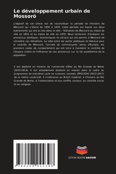 L'objectif de cet article est de reconstituer la période de l'histoire de Mossoró qui s'étend de 1850 à 1876. Cette période est basée sur deux événements qui ont eu lieu dans la ville : l'élévation de Mossoró au statut de ville en 1852 et au statut de ville en 1870. Nous tenterons d'analyser les processus politiques, économiques et sociaux qui ont permis à Mossoró de connaître ces élévations. La lutte entre les partis politiques et libéraux pour le contrôle de Mossoró, l'arrivée de commerçants venus d'Europe, les premiers codes de comportement qui ont servi à maintenir le contrôle de l'espace urbain et l'influence de ces processus sur la vie quotidienne de la population.