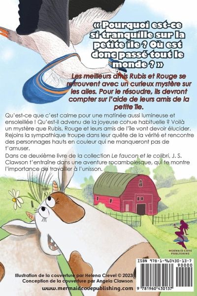 Pourquoi est-ce si tranquille sur la petite île ? Où est donc passé tout le monde ? Les meilleurs amis Rubis et Rouge se retrouvent avec un curieux mystère sur les ailes. Pour le résoudre, ils devront compter sur l'aide de leurs amis de la petite île. Qu'est-ce que c'est calme pour une matinée aussi lumineuse et ensoleillée ! Qu'est-il advenu de la joyeuse cohue habituelle ? Voilà un mystère que Rubis, Rouge et leurs amis de l'île vont devoir élucider. Rejoins la sympathique troupe dans leur quête de la vérité et rencontre des personnages hauts en couleur qui ne manqueront pas de t'amuser. Dans ce deuxième livre de la collection Le faucon et le colibri, J. S. Clawson t'entraîne dans une aventure rocambolesque, qui te montre l'importance de travailler à l'unisson. "Why is it so quiet on the small island? Where is everyone?" Best friends Ruby and Red have a mystery on their hands. They will have to depend on their island friends to solve the odd mystery together. Sure is quiet for such a bright and sunny morning. Where is the hustle and bustle? It is a mystery that Ruby, Red, and their island friends must unravel. Join the group as they work together to answer the question of what has happened to everyone on the island. Sure is quiet for such a bright and sunny morning. Where is the hustle and bustle? It is a mystery that Ruby, Red, and their island friends must unravel. Join the group as they work together to answer the question of what has happened to everyone on the island.