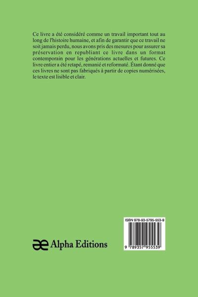 Le forçat honoraire: roman immoral, un livre classique, a été considéré comme important tout au long de l'histoire de l'humanité, et pour que cet ouvrage ne soit jamais oublié, chez Alpha Editions, nous avons fait des efforts pour sa préservation en rééditant ce livre dans un format moderne pour les générations présentes et futures. Tout ce livre a été reformaté, retapé et conçu. Ces livres ne sont pas constitués de copies numérisées de leur ¿uvre originale et le texte est donc clair et lisible.