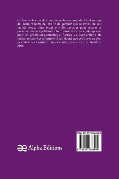 Le fourbe, a été considérée comme importante tout au long de l'histoire de l'humanité. Dans un effort pour s'assurer que ce travail ne soit jamais perdu, nous avons pris des mesures pour assurer sa préservation en republiant ce livre dans un format moderne pour les générations actuelles et futures. Ce livre complet a été retapé, remanié et reformaté. Comme ces livres ne sont pas des scans des publications originales des auteurs, le texte est lisible et clair.