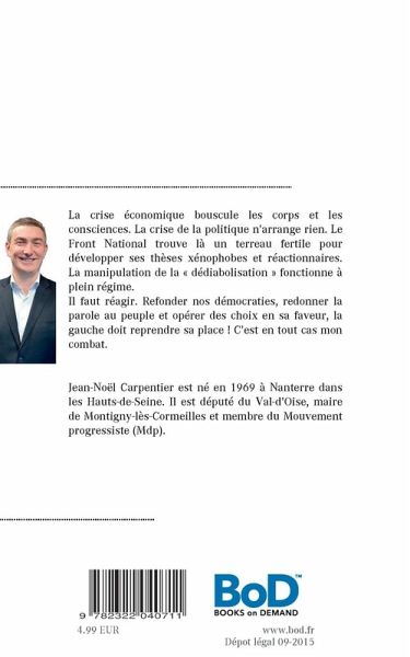 La crise économique bouscule les corps et les consciences. La crise de la politique n'arrange rien. Le Front National trouve là un terreau fertile pour développer ses thèses xénophobes et réactionnaires. La manipulation de la « dédiabolisation » fonctionne à plein régime.Il faut réagir. Refonder nos démocraties, redonner la parole au peuple et opérer des choix en sa faveur, la gauche doit reprendre sa place ! C'est en tout cas mon combat.
