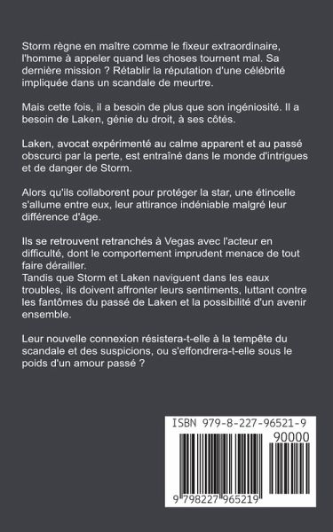 Storm règne en maître comme le fixeur extraordinaire, l'homme à appeler quand les choses tournent mal. Sa dernière mission ? Rétablir la réputation d'une célébrité impliquée dans un scandale de meurtre. Mais cette fois, il a besoin de plus que son ingéniosité. Il a besoin de Laken, génie du droit, à ses côtés. Laken, avocat expérimenté au calme apparent et au passé obscurci par la perte, est entraîné dans le monde d'intrigues et de danger de Storm. Alors qu'ils collaborent pour protéger la star, une étincelle s'allume entre eux, leur attirance indéniable malgré leur différence d'âge. Ils se retrouvent retranchés à Vegas avec l'acteur en difficulté, dont le comportement imprudent menace de tout faire dérailler. Tandis que Storm et Laken naviguent dans les eaux troubles, ils doivent affronter leurs sentiments, luttant contre les fantômes du passé de Laken et la possibilité d'un avenir ensemble. Leur nouvelle connexion résistera-t-elle à la tempête du scandale et des suspicions, ou s'effondrera-t-elle sous le poids d'un amour passé ?