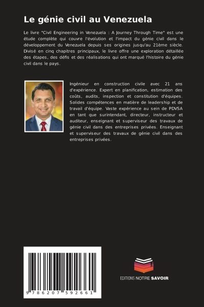Le livre "Civil Engineering in Venezuela : A Journey Through Time" est une étude complète qui couvre l'évolution et l'impact du génie civil dans le développement du Venezuela depuis ses origines jusqu'au 21ème siècle. Divisé en cinq chapitres principaux, le livre offre une exploration détaillée des étapes, des défis et des réalisations qui ont marqué l'histoire du génie civil dans le pays.