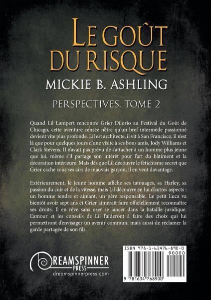 Perspectives, tome 2 Quand Lil Lampert rencontre Grier Dilorio au Festival du Goût de Chicago, cette aventure censée n¿être qüun bref intermède passionné devient vite plus profonde. Lil est architecte, il vit à San Francisco, il n¿est là que pour quelques jours d¿une visite à ses bons amis, Jody William et Clark Stevens. Il n¿avait pas prévu de s¿attacher à un homme plus jeune que lui, même s¿il partage son intérêt pour l¿art du bâtiment et la décoration intérieure. Mais dès que Lil découvre le fétichisme secret que Grier cache sous ses airs de mauvais garçon, il en veut davantage. Extérieurement, le jeune homme affiche ses tatouages, sa Harley, sa passion du cuir et de la vitesse, mais Lil découvre en lui d¿autres aspects : un homme tendre et aimant, un père responsable. Le petit Luca va bientôt avoir sept ans et Grier aimerait faire officiellement reconnaître ses droits. Il en rêve sans oser se lancer dans la bataille juridique. L¿amour et les conseils de Lil l¿aideront à faire des choix qui lui permettront d¿envisager un avenir commun, mais aussi de réclamer la garde partagée de son fils.