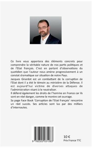 Ce livre vous apportera des éléments concrets pour comprendre la véritable nature de nos partis politiques et de l Etat français. C est en partant d observations du quotidien que l auteur nous amène progressivement à un constat dramatique sur situation de notre Pays.L auteur dénonce le non respect des droits de l homme dans le monde du travail qui permet aux entreprises de licencier à moindre coût. Il dénonce également les nouvelles lois françaises adaptées par l'Etat pour servir les banques au détriment des citoyens.Cet ouvrage n impose aucune doctrine. Libre à chacun de se forger son opinion en fonction des éclairages qu il apporte.