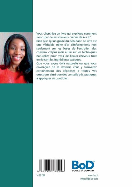 Vous cherchiez un livre qui explique comment s'occuper de ses cheveux crépus de A à Z?Bien plus qu'un guide du débutant, ce livre est une véritable mine d'or d'informations non seulement sur les bases de l'entretien des cheveux crépus mais aussi sur les techniques naturelles pour avoir de beaux cheveux tout en évitant les ingrédients toxiques.Que vous soyez déjà naturelle ou que vous envisagiez de le devenir, vous y trouverez certainement des réponses à toutes vos questions ainsi que des conseils très pratiques à appliquer au quotidien.