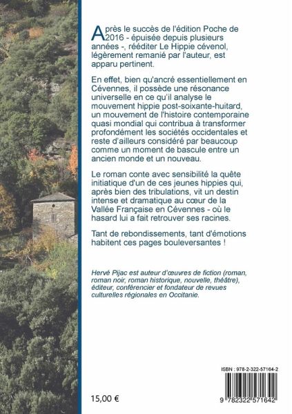 Après le succès de l'édition Poche de 2016 - épuisée depuis plusieurs années -, rééditer Le Hippie cévenol, légèrement remanié par l'auteur, est apparu pertinent. En effet, bien qu'ancré essentiellement en Cévennes, il possède une résonance universelle en ce qu'il analyse le mouvement hippie post-soixante-huitard, un mouvement de l'histoire contemporaine quasi mondial qui contribua à transformer profondément les sociétés occidentales et reste d'ailleurs considéré par beaucoup comme un moment de bascule entre un ancien monde et un nouveau. Le roman conte avec sensibilité la quête initiatique d'un de ces jeunes hippies qui, après bien des tribulations, vit un destin intense et dramatique au coeur de la Vallée Française en Cévennes - où le hasard lui a fait retrouver ses racines. Tant de rebondissements, tant d'émotions habitent ces pages bouleversantes !