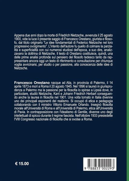 Appena due anni dopo la morte di Friedrich Nietzsche, avvenuta il 25 agosto 1900, vide la luce il presente saggio di Francesco Orestano, giurista e filosofo, dal titolo originario "Le idee fondamentali di Federico Nietzsche nel loro progressivo svolgimento". L'intento dell'autore fu quello di colmare la parzialità e superficialità con cui numerosi studiosi dell'epoca, a suo dire, analizzavano la dottrina di Nietzsche. Il testo di Orestano costituisce, quindi, una delle prime analisi profonde sul pensiero del filosofo tedesco tanto da rappresentare ancora oggi un testo di riferimento e consultazione per chiunque voglia avvicinarsi, per studio o per passione, alla conoscenza delle idee di Nietzsche.
