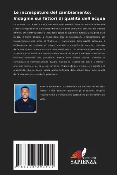 La Namibia, tra i Paesi più aridi dell'Africa sub-sahariana, deve far fronte a un'estrema scarsità e fragilità delle sue risorse idriche. La regione centrale si basa su corsi d'acqua effimeri, che contribuiscono al 22% delle acque di superficie durante la stagione delle piogge. Il fiume Otjiseru, a monte della diga di Swakopoort, è fondamentale per l'approvvigionamento idrico di Windhoek. Il monitoraggio della qualità dell'acqua è fondamentale per mitigare gli impatti ecologici e prevenire le malattie trasmesse dall'acqua. Questa ricerca informa i responsabili politici, le istituzioni di gestione delle acque e le parti interessate sullo stato della qualità dell'acqua e sull'impatto dell'uso del territorio, favorendo una protezione olistica delle risorse idriche. Aumenta la comunicazione sull'inquinamento fluviale, migliora la raccolta dei dati e identifica i principali inquinanti per le azioni correttive, migliorando così il benessere sociale e la produttività. Questo studio valuta anche l'efficacia delle attuali leggi sulla qualità dell'acqua nella gestione dell'inquinamento.