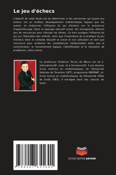 L'objectif de cette étude est de déterminer si les personnes qui jouent aux échecs ont un meilleur développement mathématique logique que les autres, et d'observer l'influence du jeu d'échecs sur le processus d'apprentissage. Dans le paysage éducatif actuel, les enseignants utilisent peu de ressources pour stimuler les élèves. Ce livre souligne l'influence du jeu sur l'éducation des enfants, ainsi que l'importance de la pratique du jeu d'échecs dans le contexte éducatif et social et son utilisation en tant que ressource pour améliorer les compétences intellectuelles telles que la concentration, le raisonnement logique, l'identification et la résolution de problèmes, entre autres.