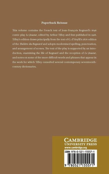 This 1918 volume contains the French text of Jean-Fran ois Regnard's 1696 comic play Le Joueur, edited by Arthur Tilley.