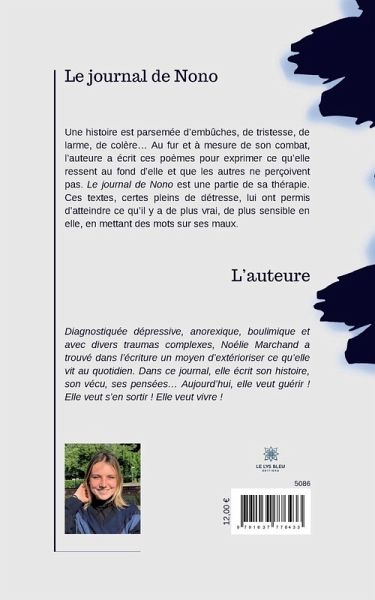 Une histoire est parsemée d¿embûches, de tristesse, de larme, de colère¿ Au fur et à mesure de son combat, l¿auteure a écrit ces poèmes pour exprimer ce qüelle ressent au fond d¿elle et que les autres ne perçoivent pas. Le journal de Nono est une partie de sa thérapie. Ces textes, certes pleins de détresse, lui ont permis d¿atteindre ce qüil y a de plus vrai, de plus sensible en elle, en mettant des mots sur ses maux.