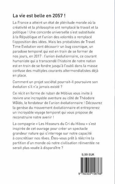 À propos de l'ouvrage qui constitue l'origine de l'union évolutionnaire, Théodore Wåldo déclarait en 2057 sur Radio Å :"Lorsque j'ai commencé en 2013 l'écriture du journal d'un vagabond, je ne me doutais pas que ce "road novel" allait conduire à une prise de conscience collective qui bouleverserait à ce point l'histoire de notre pays."Cet essai retrace les premières années d'un parcours de vie brutal mais sans concessions qui va de l'effarement à la désillusion, de la douleur à l'indignation, de la contestation, à l'engagement citoyen d'un homme en quête de justice sociale. Son histoire pourrait être la vôtre, la mienne, celle d'un inconnu... Nul n'est aujourd'hui, à l'abri d'un "accident" de la vie.Le journal d'un vagabond est un conte urbain, un parcours initiatique qui retrace la genèse d'un idéal humaniste et philosophique.