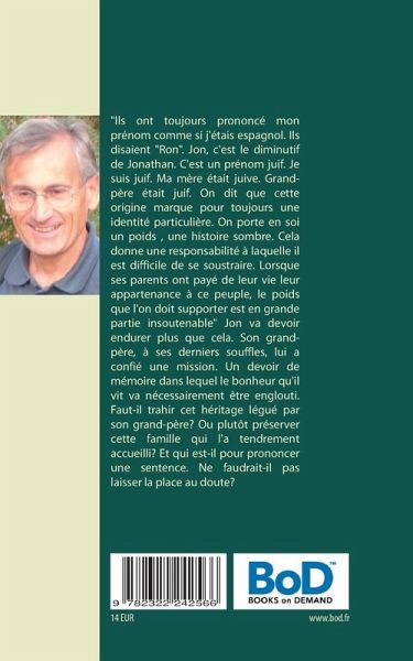 "Ils ont toujours prononcé mon prénom comme si j'étais espagnol. Ils disaient "Ron". Jon, c'est le diminutif de Jonathan. C'est un prénom juif. Je suis juif. Ma mère était juive. Grand-père était juif. On dit que cette origine marque pour toujours une identité particulière. On porte en soi un poids , une histoire sombre. Cela donne une responsabilité à laquelle il est difficile de se soustraire. Lorsque ses parents ont payé de leur vie leur appartenance à ce peuple, le poids que l'on doit supporter est en grande partie insoutenable" Jon va devoir endurer plus que cela. Son grand-père, à ses derniers souffles, lui a confié une mission. Un devoir de mémoire dans lequel le bonheur qu'il vit va nécessairement être englouti. Faut-il trahir cet héritage légué par son grand-père? Ou plutôt préserver cette famille qui l'a tendrement accueilli? Et qui est-il pour prononcer une sentence. Ne faudrait-il pas laisser la place au doute?
