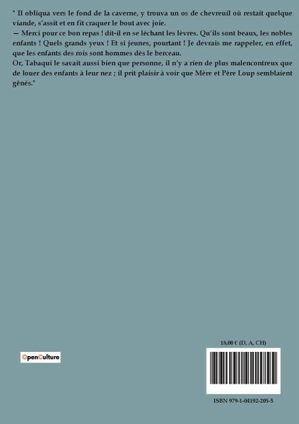 " Il obliqua vers le fond de la caverne, y trouva un os de chevreuil où restait quelque viande, s¿assit et en fit craquer le bout avec joie. ¿ Merci pour ce bon repas ! dit-il en se léchant les lèvres. Qüils sont beaux, les nobles enfants ! Quels grands yeux ! Et si jeunes, pourtant ! Je devrais me rappeler, en effet, que les enfants des rois sont hommes dès le berceau. Or, Tabaqui le savait aussi bien que personne, il n¿y a rien de plus malencontreux que de louer des enfants à leur nez ; il prit plaisir à voir que Mère et Père Loup semblaient gênés."
