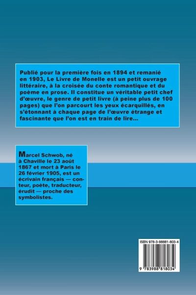 Publié pour la première fois en 1894 et remanié en 1903, Le Livre de Monelle est un petit ouvrage littéraire, à la croisée du conte romantique et du poème en prose. Il constitue un véritable petit chef d'¿uvre, le genre de petit livre (à peine plus de 100 pages) que l'on parcourt les yeux écarquillés, en s'étonnant à chaque page de l'¿uvre étrange et fascinante que l'on est en train de lire...
