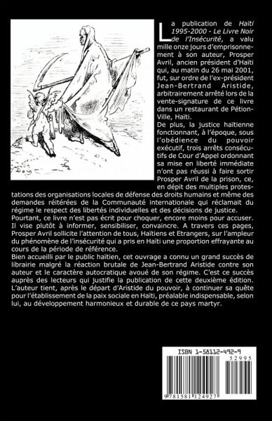 La parution de ce livre a provoqué d'énormes remous en Haïti. Lors de sa présentation le 26 mai 2001, le gouvernement Aristide procéda violemment à l'arrestation de son auteur, Prosper Avril, un ancien président de ce pays. Au sujet de cet incident, Yves Colon, du Miami Herald, écrit ceci dans la livraison du 31 mai 2001 de ce journal : "En sa qualité d'ancien président et de général d'armée, Prosper Avril représentait une figure importante en Haïti. Aujourd'hui, ce grand-père de 64 ans se trouve dans le pénitencier bondé de Port-au-Prince... La semaine dernière, il s'était rendu dans un restaurant prisé d'une banlieue de la capitale pour signer des copies de son livre : Haïti: 1995-2000 -Le Livre Noir de l'Insécurité. L'ouvrage attribue une récente vague d'enlèvements, de hold-up, de vols, d'assassinats en Haïti à l'inefficacité de la force de police d'Aristide. Pendant qu'Avril signait les livres, des hommes lourdement armés et portant des masques noirs entrèrent dans le restaurant et s'emparèrent de sa personne." Visiblement furieux que quelqu'un ait osé critiquer sa gestion, l'ex-président Jean-Bertrand Aristide avait donc réagi violemment. Néanmoins, le livre d'Avril était classé deuxième parmi les best-sellers d'Haïti pour l'année 2001, car l'auteur y mettait à nu devant la société un problème crucial qui réclamait une solution urgente : l'insécurité ravageant la population haïtienne. Plusieurs années après l'exécution de l'opération baptisée Support à la Démocratie menée en Haïti en 1994, la paix sociale promise n'a pas été matérialisée dans ce pays. Nombre d'homicides étaient commis en plein jour sans que les assassins aient été identifiés, arrêtés et déférés à la justice. De 1995 à l'année 2000, période couverte par ce livre, Haïti a perdu un nombre considérable de ses filles et fils, victimes de crimes à motivation politique ou de droit commun. Des Etrangers, également, ont été emportés par le spectre de la mort violente qui hantait les coins et recoins du pays. Prosper Avril relate dans cet ouvrage les conditions dans lesquelles un total de 1431 crimes atroces incluant des assassinats par balles, armes tranchantes, lynchages, lapidations, strangulations, supplices du collier, etc... ont survenu. Il met également en évidence l'irresponsable et scandaleuse attitude des autorités en place face à la situation, favorisant une totale impunité aux assassin's. Le 29 février 2004 mit fin au pouvoir Lavalas en Haïti. Alors, Jean-Bertrand Aristide n'étant plus au pouvoir pour bloquer les décisions de justice, Prosper Avril était libéré en vertu des nombreux arrêts ordonnant sa mise en liberté. Une fois libre, il a pris la décision de présenter au public cette deuxième édition de son livre, vu l'épuisement quasi-total du premier stock imprimé. L'auteur espère, par cette initiative, susciter l'intérêt international sur le sujet pour que les nouveaux dirigeants arrivent à trouver le support nécessaire pour la restauration d'une paix sociale véritable en Haïti.