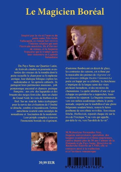 Inspiré par la vie et l'oeuvre du poète same Nils-Aslak Valkeapää (1943-2001), le roman conte la relation passionnée qui unit Ándaras et Fanny, un poète-musicien renniculteur et l'ethnolinguiste française qui le traduit après leur rencontre en Pays same (Laponie finlandaise).Le livre s'ouvre sur un décor dramatique : les obsèques d'Ándaras et l'hommage qui lui est rendu au coeur de l'hiver boréal, sur les rochers d'un fjord de Norvège noyés dans la brume. Au fil du récit renaît l'enthousiasme de cette complicité improbable entre un fils d'éleveur de rennes et une universitaire parisienne vouée à la défense des langues de tradition orale. Leur dialogue bilingue sans tabous s'improvise entre concerts citadins et escapades à travers l'immensité de la toundra où le poète recueille pour sa Symphonie arctique les chants d'oiseaux migrateurs. Ils unissent leurs patrimoines musicaux dans l'isolement d'un chalet du Grand Nord : la mélopée du Joïk primitif, les voix de Barbara et de Brel se répercutent sous la lune, auxquelles font écho les cris des lagopèdes et des pluviers guignards. Les chapitres sont rythmés par la musicalité de poèmes empruntés à la trilogie de Valkeapää Migrante est ma demeure (same Ruoktu Váimmus, 1985) et celle des lieux sames, finnois, norvégiens où s'égrènent, d'automnes flamboyants en déserts de glace, les contrastes des saisons. Un paysage sonore et visuel étayé de nombreuses photo¬graphies. Sombre et incandescent, le profil de l'artiste autochtone écartelé entre nostalgie du nomadisme et fascination de la modernité se détache sur un fond de luttes écologiques pour la survie des cultures minoritaires. Le poète-joïkeur happé par sa célébrité, la chercheuse devient familière des villages de pêcheurs - dans sa famille d'accueil de Veahcat, au Vanhainkoti, Maison de retraite d'Ohcejohka où, soignante périodique, elle s'imprègne, malgré les interdits de la secte læstadienne, de la vieille langue same et des légendes traditionnelles. La quête idéaliste d'une vie qui échappe au quotidien les a rapprochés, leurs voca¬tions respectives les séparent : la linguiste retourne à son milieu académique urbain; le poète nomade, emporté par le tourbillon d'une gloire fulgurante soudain brisée, restera le héros posthume de sa culture ethnique revivifiée. Fanny reconnaît sur la rive de l'Arctique, l'oiseau fétiche du poète qui transcende le deuil en migration saisonnière - Biellocizás, vision magique, ou rêve immortel ?