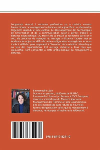 Longtemps réservé à certaines professions ou à certains niveaux hiérarchiques, le management à distance est aujourd'hui un phénomène largement répandu et peu exploré. Le développement des technologies de l'information et de la communication aurait-il permis d'abolir la distance géographique? Au travers de ce travail de recherche basé sur le vécu de centaines de managers et managés à distance, l'auteur met en évidence les enjeux et défis de cette configuration managériale, et nous incite à réfléchir plus largement à l'évolution de la relation hiérarchique au sein des organisations. Cet ouvrage s'adresse à tous ceux qui, aujourd'hui, sont confrontés à cette problématique du management à distance.