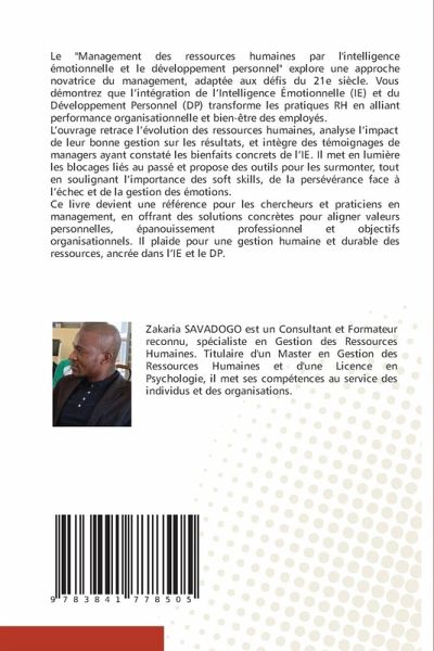 Le "Management des ressources humaines par l'intelligence émotionnelle et le développement personnel" explore une approche novatrice du management, adaptée aux défis du 21e siècle. Vous démontrez que l'intégration de l'Intelligence Émotionnelle (IE) et du Développement Personnel (DP) transforme les pratiques RH en alliant performance organisationnelle et bien-être des employés.L'ouvrage retrace l'évolution des ressources humaines, analyse l'impact de leur bonne gestion sur les résultats, et intègre des témoignages de managers ayant constaté les bienfaits concrets de l'IE. Il met en lumière les blocages liés au passé et propose des outils pour les surmonter, tout en soulignant l'importance des soft skills, de la persévérance face à l'échec et de la gestion des émotions.Ce livre devient une référence pour les chercheurs et praticiens en management, en offrant des solutions concrètes pour aligner valeurs personnelles, épanouissement professionnel et objectifs organisationnels. Il plaide pour une gestion humaine et durable des ressources, ancrée dans l'IE et le DP.