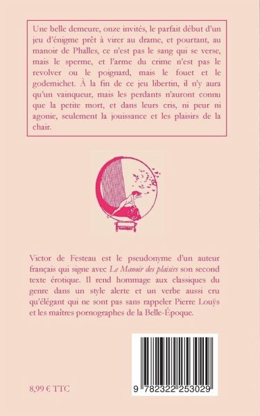 Une belle demeure, onze invités, le parfait début d'un jeu d'énigme prêt à virer au drame, et pourtant, au manoir de Phalles, ce n'est pas le sang qui se verse mais le sperme, et l'arme du crime n'est pas le revolver ou le poignard, mais le fouet et le godemichet. A la fin de ce jeu libertin, il n'y aura qu'un vainqueur, mais les perdants n'auront connu que la petite mort, et dans leurs cris, ni peur ni agonie, seulement la jouissance et les plaisirs de la chair.