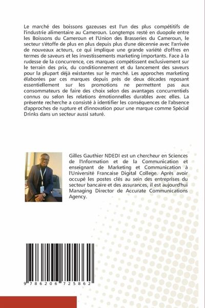 Le marché des boissons gazeuses est l'un des plus compétitifs de l'industrie alimentaire au Cameroun. Longtemps resté en duopole entre les Boissons du Cameroun et l'Union des Brasseries du Cameroun, le secteur s'étoffe de plus en plus depuis plus d'une décennie avec l'arrivée de nouveaux acteurs, ce qui implique une grande variété d'offres en termes de saveurs et les investissements marketing importants. Face à la rudesse de la concurrence, ces marques compétissent exclusivement sur le terrain des prix, du conditionnement et du lancement des saveurs pour la plupart déjà existantes sur le marché. Les approches marketing élaborées par ces marques depuis près de deux décades reposant essentiellement sur les promotions ne permettent pas aux consommateurs de faire des choix selon des avantages concurrentiels connus ou selon les relations émotionnelles durables avec elles. La présente recherche a consisté à identifier les conséquences de l'absence d'approches de rupture et d'innovation pour une marque comme Spécial Drinks dans un secteur aussi saturé.