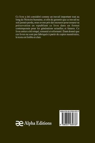 Le mariage de Chiffon, est un livre classique et rare, qui a été considéré comme important tout au long de l'histoire de l'humanité, et pour que cet ouvrage ne soit jamais oublié, chez Alpha Editions, nous avons fait des efforts pour sa préservation en rééditant ce livre dans un format moderne pour les générations présentes et futures. . Tout ce livre a été reformaté, retapé et repensé. Ces livres ne sont pas constitués de copies numérisées de leur ¿uvre originale et leur texte est donc clair et lisible. Ce livre remarquable s'inscrit dans les genres de Language and Literatures, Romance literatures