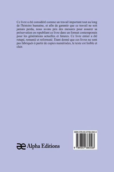 Le marquis de Loc-Ronan by Ernest Capendu a été considéré comme un travail important tout au long de l'histoire humaine, et afin de garantir que ce travail ne soit jamais perdu, nous avons pris des mesures pour assurer sa préservation en republiant ce livre dans un format contemporain pour les générations actuelles et futures. Ce livre entier a été retapé, remanié et reformaté. Étant donné que ces livres ne sont pas fabriqués à partir de copies numérisées, le texte est lisible et clair.