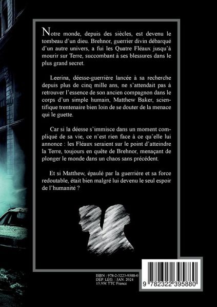 Notre monde, depuis des siècles, est devenu le tombeau d'un dieu. Brehnor, guerrier divin débarqué d'un autre univers, a fui les Quatre Fléaux jusqu'à mourir sur Terre, succombant à ses blessures dans le plus grand secret. Leerina, déesse-guerrière lancée à sa recherche depuis cinq mille ans, ne s'attendait pas à retrouver l'âme de son ancien compagnon dans le corps d'un simple humain, Matthew Baker, scientifique trentenaire bien loin de se douter de la menace qui le guette. Car si la déesse s'immisce dans un moment compliqué de sa vie, ce n'est rien face à ce qu'elle lui annonce : les Fléaux seraient sur le point d'atteindre la Terre, toujours en quête de Brehnor, menaçant de plonger le monde dans un chaos sans précédent. Et si Matthew, épaulé par la guerrière et sa force redoutable, était bien malgré lui devenu le seul espoir de l'humanité ?