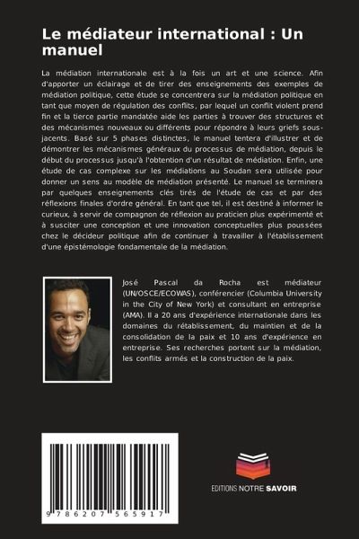 La médiation internationale est à la fois un art et une science. Afin d'apporter un éclairage et de tirer des enseignements des exemples de médiation politique, cette étude se concentrera sur la médiation politique en tant que moyen de régulation des conflits, par lequel un conflit violent prend fin et la tierce partie mandatée aide les parties à trouver des structures et des mécanismes nouveaux ou différents pour répondre à leurs griefs sous-jacents. Basé sur 5 phases distinctes, le manuel tentera d'illustrer et de démontrer les mécanismes généraux du processus de médiation, depuis le début du processus jusqu'à l'obtention d'un résultat de médiation. Enfin, une étude de cas complexe sur les médiations au Soudan sera utilisée pour donner un sens au modèle de médiation présenté. Le manuel se terminera par quelques enseignements clés tirés de l'étude de cas et par des réflexions finales d'ordre général. En tant que tel, il est destiné à informer le curieux, à servir de compagnon de réflexion au praticien plus expérimenté et à susciter une conception et une innovation conceptuelles plus poussées chez le décideur politique afin de continuer à travailler à l'établissement d'une épistémologie fondamentale de la médiation.