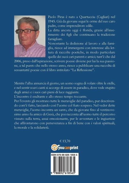 Mentre l'alba annuncia il giorno, un uomo sogna di volare oltre le stelle, e nel sentir soavi canti si accorge di essere in paradiso, dove vede stupito degli amici e i suoi cari pieni di luce raggiante. L'incontro è esultante e allo stesso tempo toccante. Per l'evento gli mostrano tutte le meraviglie del paradiso, pur descrivendo com'è fatto, lasciando così l'uomo col fiato sospeso. Nel veder dette meraviglie, l'uomo incontra un santo, che da giovane fino al ventinovesimo anno fu amico di Gesù, che poi racconta all'uomo tutto il percorso vissuto sulla terra, assai emozionante, per le avventure e le ingiustizie che affrontarono con perseveranza a fin di bene con i valori spirituali, la morale e la solidarietà.