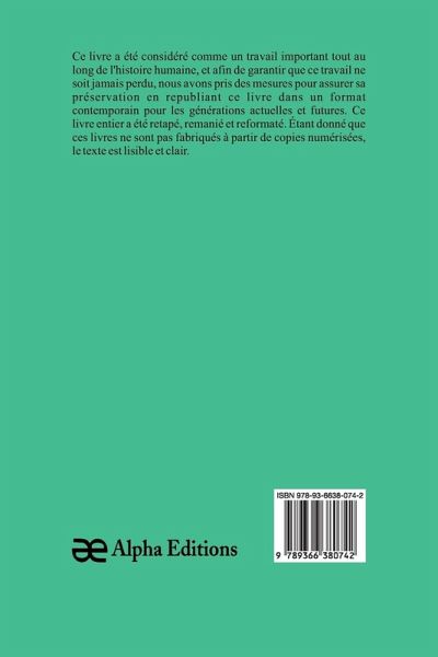 Le meunier d'Angibault"", constitue un phare dans le monde du livre, comblant le fossé entre le passé et le présent. Autrefois considéré parmi les livres anciens, cet ouvrage classique, comme tant de livres anciens et oubliés, a façonné notre compréhension de la culture et de l'histoire. exemple remarquable de livres d'histoire qui ont influencé des générations, et maintenant, grâce au dévouement d'Alpha Editions, votre éditeur de livres de confiance, il renaît dans un format frais et élégant. Nous avons soigneusement retapé, remanié et amélioré ce livre pour qu'il soit bien plus qu'un simple titre à lire. Vous pouvez désormais profiter de pages claires et faciles à lire, sans numérisation floue ni texte décoloré. En choisissant cette édition, vous investissez dans plus qu'un livre : vous sauvegardez un héritage. Votre soutien maintient en vie un morceau remarquable du patrimoine humain, garantissant que ses leçons et ses inspirations continuent de résonner dans le futur.