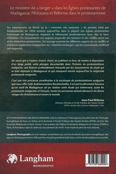 Les mouvements de Réveil ou le ministère des mpiandry (le premier initié par Rainisoalambo en 1894) existent aujourd'hui dans la plupart des Églises protestantes historiques de Madagascar, inspirant et influençant profondément leurs vies et leurs ministères. Ces mouvements ont toujours engendré des tensions et des conflits entre eux et les institutions protestantes. Cet ouvrage examine les différents aspects de ces conflits et s'intéresse également à l'apparition du ministère de berger que les mouvements de Réveil ont engendré.