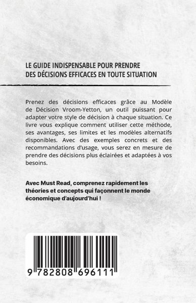 Prenez des décisions efficaces grâce au Modèle de Décision Vroom-Yetton, un outil puissant pour adapter votre style de décision à chaque situation. Ce livre vous explique comment utiliser cette méthode, ses avantages, ses limites et les modèles alternatifs disponibles. Avec des exemples concrets et des recommandations d'usage, vous serez en mesure de prendre des décisions plus éclairées et adaptées à vos besoins.