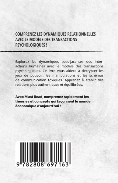 Explorez les dynamiques sous-jacentes des interactions humaines avec le modèle des transactions psychologiques. Ce livre vous aidera à décrypter les jeux de pouvoir, les manipulations et les schémas de communication toxiques. Apprenez à établir des relations plus authentiques et équilibrées.