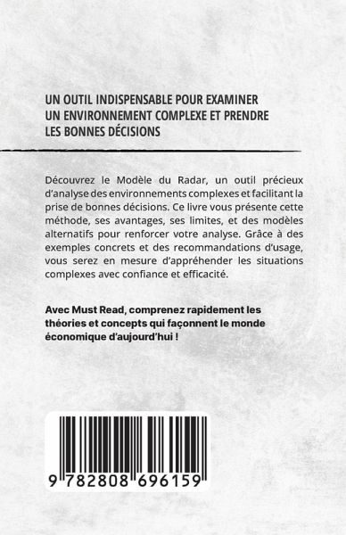 Découvrez le Modèle du Radar, un outil précieux d¿analyse des environnements complexes et facilitant la prise de bonnes décisions. Ce livre vous présente cette méthode, ses avantages, ses limites, et des modèles alternatifs pour renforcer votre analyse. Grâce à des exemples concrets et des recommandations d'usage, vous serez en mesure d'appréhender les situations complexes avec confiance et efficacité.