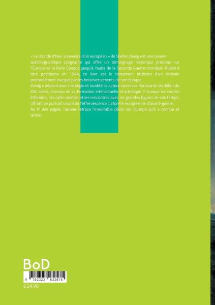 « Le monde d'hier, souvenirs d'un européen » de Stefan Zweig est une oeuvre autobiographique poignante qui offre un témoignage historique précieux sur l'Europe de la Belle Époque jusqu'à l'aube de la Seconde Guerre mondiale. Publié à titre posthume en 1944, ce livre est le testament littéraire d'un écrivain profondément marqué par les bouleversements de son époque. Zweig y dépeint avec nostalgie et lucidité la culture viennoise florissante du début du XXe siècle, berceau de sa formation intellectuelle et artistique. Il évoque les cercles littéraires, les cafés animés et les rencontres avec les grandes figures de son temps, offrant un portrait vivant de l'effervescence culturelle européenne d'avant-guerre. Au fil des pages, l'auteur retrace l'inexorable déclin de l'Europe qu'il a connue et aimée. Il décrit avec une sensibilité aiguë la montée du nazisme, l'effritement des valeurs humanistes et la désintégration de l'idéal européen. Son récit, empreint de pacifisme, témoigne de la douleur d'un homme assistant impuissant à l'effondrement de son monde. Ce livre s'inscrit naturellement dans les catégories « Mémoires », « Histoire de l'Europe » et « Littérature autrichienne ». Zweig y déploie son talent de conteur pour offrir une fresque historique à la fois intime et universelle. « Le monde d'hier » ne se contente pas d'être une simple autobiographie ; c'est une réflexion profonde sur l'identité européenne et la fragilité de la civilisation. Zweig analyse avec finesse les forces qui ont conduit à la transformation radicale de l'Europe, de l'optimisme de la Belle Époque aux ténèbres de la guerre. L'ouvrage se distingue par sa capacité à entrelacer le destin personnel de l'auteur avec les grands événements historiques. À travers son expérience d'exilé, Zweig offre un regard unique sur le déracinement et la perte d'identité vécus par de nombreux intellectuels européens face à la montée des totalitarismes.