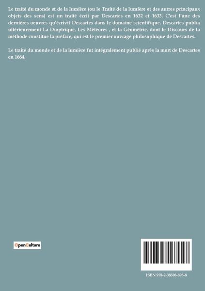 Le traité du monde et de la lumière (ou le Traité de la lumière et des autres principaux objets des sens) est un traité écrit par Descartes en 1632 et 1633. C'est l'une des dernières oeuvres qu'écrivit Descartes dans le domaine scientifique. Descartes publia ultérieurement La Dioptrique, Les Météores , et la Géométrie, dont le Discours de la méthode constitue la préface, qui est le premier ouvrage philosophique de Descartes. Le traité du monde et de la lumière fut intégralement publié après la mort de Descartes en 1664.
