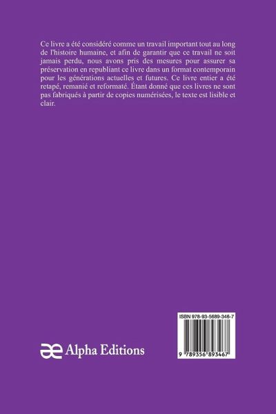 Le Montonéro, a été reconnu comme une ¿uvre majeure tout au long de l'histoire humaine, et nous avons pris des précautions pour assurer sa préservation en republiant ce livre de manière moderne pour les générations présentes et futures. Ce livre a été entièrement retapé, révisé et reformaté. Le texte est lisible et clair car ces livres ne sont pas créés à partir de copies numérisées.