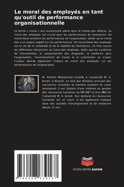 Le terme « moral » est couramment utilisé dans le monde des affaires. Le moral des employés est crucial pour les performances de l'entreprise. Un moral élevé améliore les performances de l'organisation, tandis qu'un moral bas a un impact négatif sur les performances. Un moral élevé des employés est la clé de la rentabilité et de la stabilité de l'entreprise. Ce livre couvre les différentes dimensions du moral des employés, telles que les systèmes de rémunération, le comportement des dirigeants, la confiance dans l'organisation, l'environnement de travail et la satisfaction au travail. L'auteur aborde également l'impact du moral des employés sur les performances de l'organisation.
