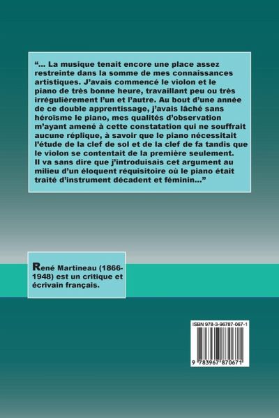 "... La musique tenait encore une place assez restreinte dans la somme de mes connaissances artistiques. J’avais commencé le violon et le piano de très bonne heure, travaillant peu ou très irrégulièrement l’un et l’autre. Au bout d’une année de ce double apprentissage, j’avais lâché sans héroïsme le piano, mes qualités d’observation m’ayant amené à cette constatation qui ne souffrait aucune réplique, à savoir que le piano nécessitait l’étude de la clef de sol et de la clef de fa tandis que le violon se contentait de la première seulement. Il va sans dire que j’introduisais cet argument au milieu d’un éloquent réquisitoire où le piano était traité d’instrument décadent et féminin..."
