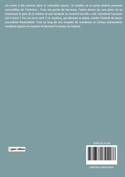 "Le Mystère de la chambre jaune" est un roman policier de Gaston Leroux, publié en 1907, qui met en scène l'enquête du jeune journaliste et détective amateur Joseph Rouletabille. L'intrigue se déroule au château du Glandier, où un crime inexplicable a été commis dans une chambre fermée de l'intérieur. Mlle Stangerson, la victime, a été attaquée dans sa chambre, la fameuse "Chambre Jaune", alors que toutes les issues étaient verrouillées. L'affaire défie la logique et laisse perplexes les enquêteurs, y compris le juge d'instruction M. de Marquet. Rouletabille, avec son esprit analytique et sa perspicacité, s'intéresse particulièrement à cette affaire en raison de son caractère énigmatique. Il est accompagné de son ami Sainclair, qui relate les événements. Au fil de l'enquête, Rouletabille découvre des indices qui échappent aux autres, comme l'utilisation du revolver par Mlle Stangerson pour se défendre et la mystérieuse fuite de l'assassin par une fenêtre aux volets fermés. Le roman explore les thèmes de la logique, de la déduction et de l'ingéniosité face à un mystère apparemment insoluble, tout en mettant en lumière les relations complexes entre les personnages impliqués.