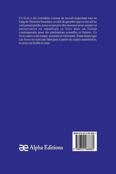 Le mystère de la chambre jaune, un livre classique, a été considéré comme important tout au long de l'histoire de l'humanité, et pour que cet ouvrage ne soit jamais oublié, chez Alpha Editions, nous avons fait des efforts pour sa préservation en rééditant ce livre dans un format moderne pour les générations présentes et futures. Tout ce livre a été reformaté, retapé et conçu. Ces livres ne sont pas constitués de copies numérisées de leur ¿uvre originale et le texte est donc clair et lisible.