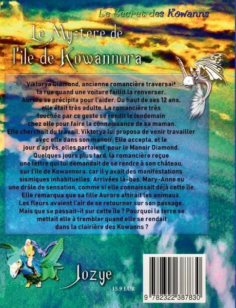 Viktorya Diamond, ancienne romancière traversait la rue quand une voiture faillit la renverser. Aurore se précipita pour l'aider. Du haut de ses 12 ans, elle était très adulte. La romancière très touchée par ce geste se rendit le lendemain chez elle pour faire la connaissance de sa maman. Elle cherchait du travail. Viktorya lui proposa de venir travailler avec elle dans son manoir. Elle accepta, et le jour d'après, elles partaient pour le manoir Diamond. Quelques jours plus tard, la romancière reçue une lettre qui lui demandait de se rendre à son château sur l'île de Kowannora car il y avait des manifestations sismiques inhabituelles. Arrivées là-bas, Mary-Anne eu une drôle de sensation, comme si elle connaissait déjà cette île. Elle remarqua que sa fille Aurore attirait les animaux. Les fleurs avaient l'air de se retourner sur son passage. Mais que se passait-il sur cette île? Pourquoi la terre se mettait elle à trembler quand elle se rendait dans la clairière des Kowanns?